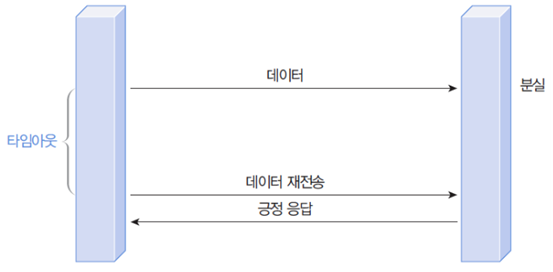 즉, 송신 호스트는 데이터 프레임을 전송한 후에 특정 시간까지 수신 호스트의 긍정/부정 응답 프레임이 도착하지 않으면 타임아웃 기능에 따라 원래의 프레임을 스스로 재전송한다.