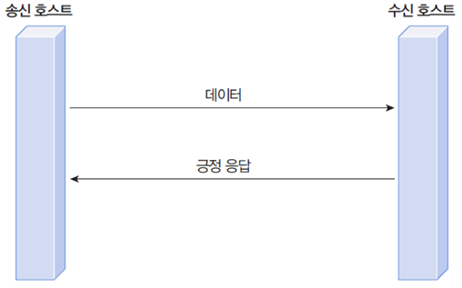 수신 호스트는 데이터 프레임을 제대로 수신했다는 의미의 긍정 응답 프레임을 회신함으로써 하나의 데이터 프레임에 대한 전송 과정이 완료된다.