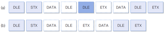 즉, 각 프레임의 시작 위치에 DLE·STX 문자를 추가하고, 끝나는 위치에는 DLE·ETX를 추가해 프레임의 다른 정보와 구분할 수 있도록 한다.