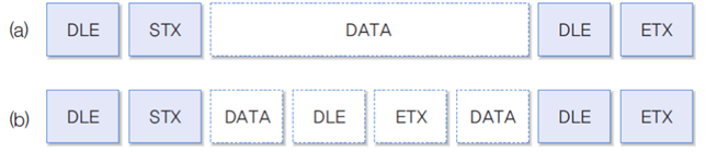 즉, 전송 데이터가 DLE 문자를 포함하면 DLE 문자 다음에 DLE 문자 하나를 강제로 추가한다.