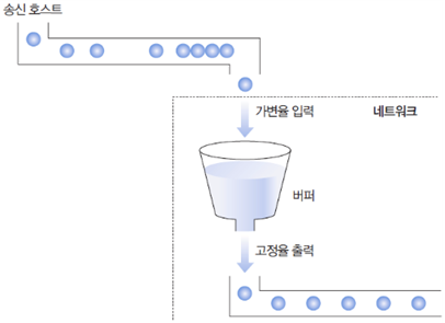 리키 버킷 알고리즘을 사용하면 송신 호스트로부터 입력되는 패킷이 시간대별로 일정하지 않아도, 즉 가변적이어도 일정한 전송률로 변경된다.