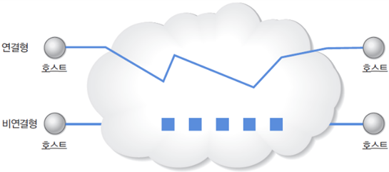 패킷을 전송하기 전에 송수신 호스트 사이에 연결을 설정하는 연결형 서비스와 연결 설정 없이 데이터를 패킷 단위로 전송하는 비연결형 서비스이다.