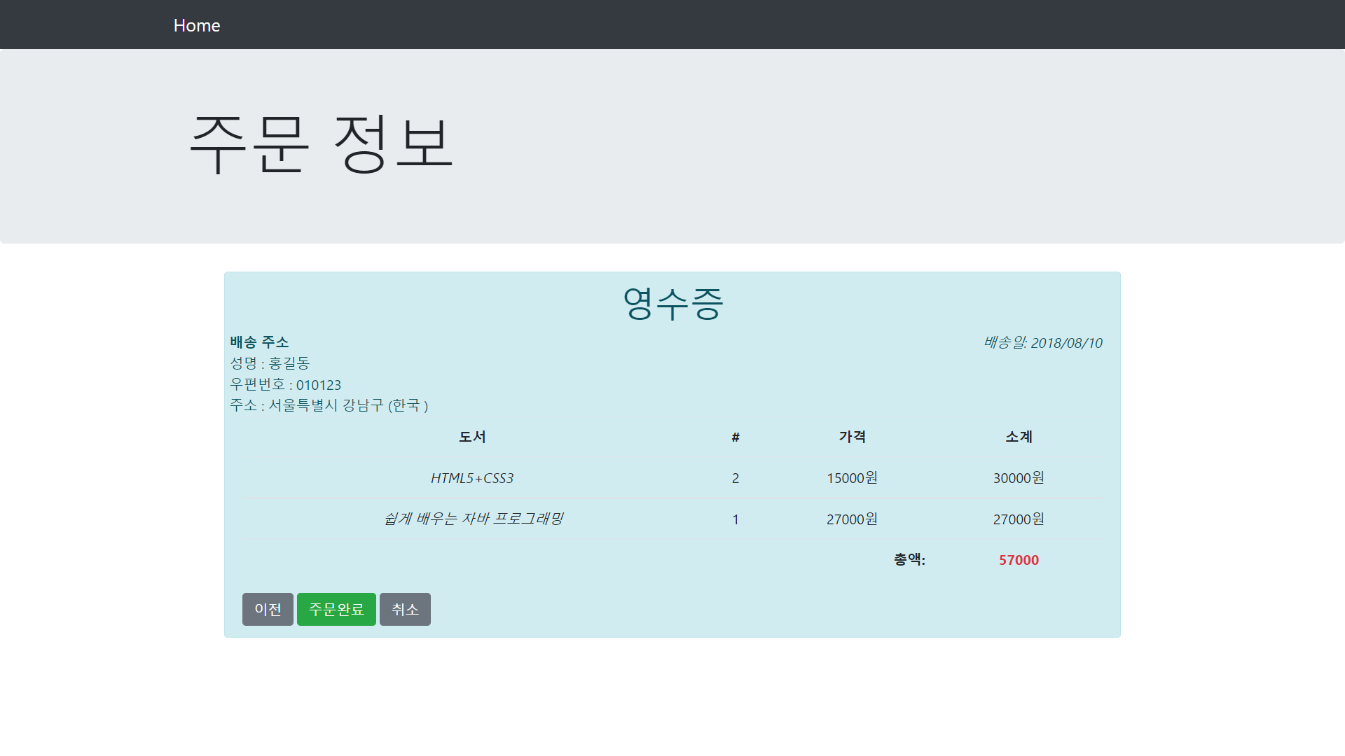 <h1 class="display-3">주문 완료</h1>