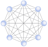 완전형은 네트워크에 존재하는 모든 호스트가 다른 모든 호스트와 일대일로 직접 연결하는 방식이다.
