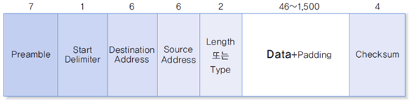- Preamble(프리엠블) : 7바이트 크기로, 수신 호스트가 송신 호스트의 클록과 동기를 맞출 수 있도록 시간 여유를 제공하는 것이 목적이다.